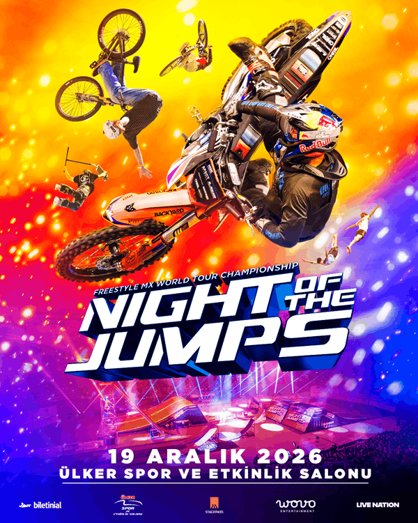 Stagepass ve WOVO Entertainment organizasyonuyla, Türkiye Motosiklet Federasyonu katkılarıyla Ülker Sports Arena’da gerçekleşecek NIGHT of the JUMPs – Freestyle MX World Tour Championship, nefes kesen bir mücadeleye sahne olacak. 25 yılı aşkın süredir, 3 milyonu aşkın ekstrem spor tutkununu bir araya getiren ve dünya rekorlarıyla anılan etkinliğin biletleri, 20 Nisan Pazartesi saat 11.00’de Biletinial üzerinden satışa çıkacak.